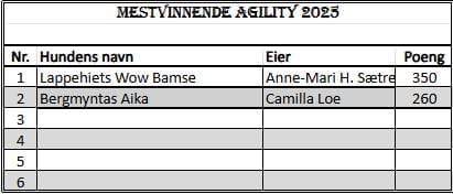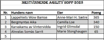 Mestvinnende hunder 2025 – agility hopp