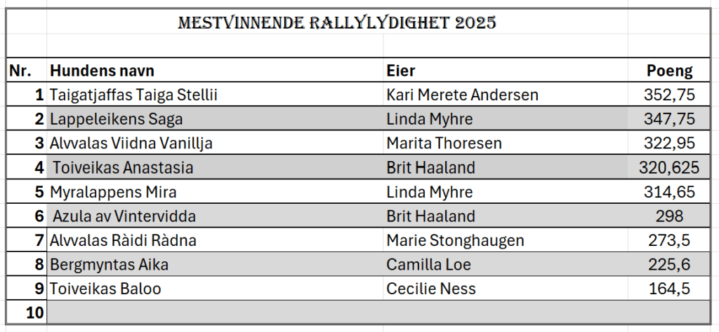 Mestvinnende hunder 2025 – rallylydighet